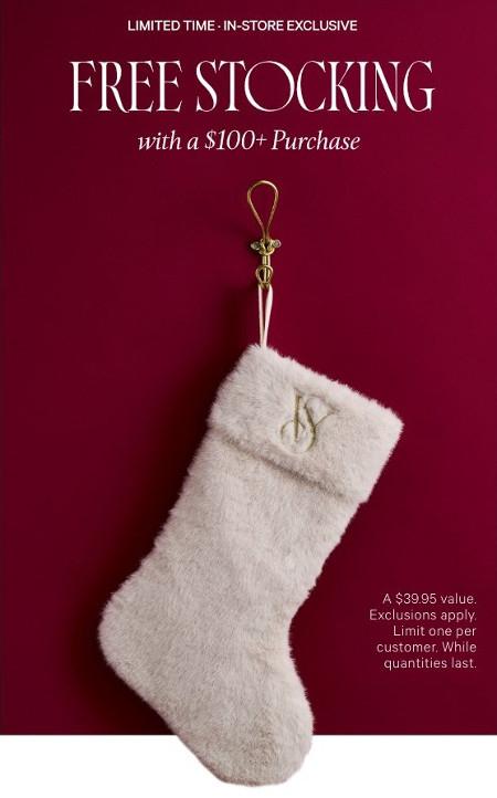 Hurry, limited time only! Shop in store and get a free stocking with a $100+ purchase.