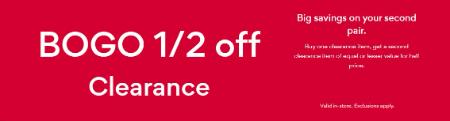 Shop in store and buy one clearance item, get a second clearance item of equal or lesser value for half.