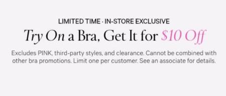 Limited time! Shop in store and get $10 off when you try on a bra.